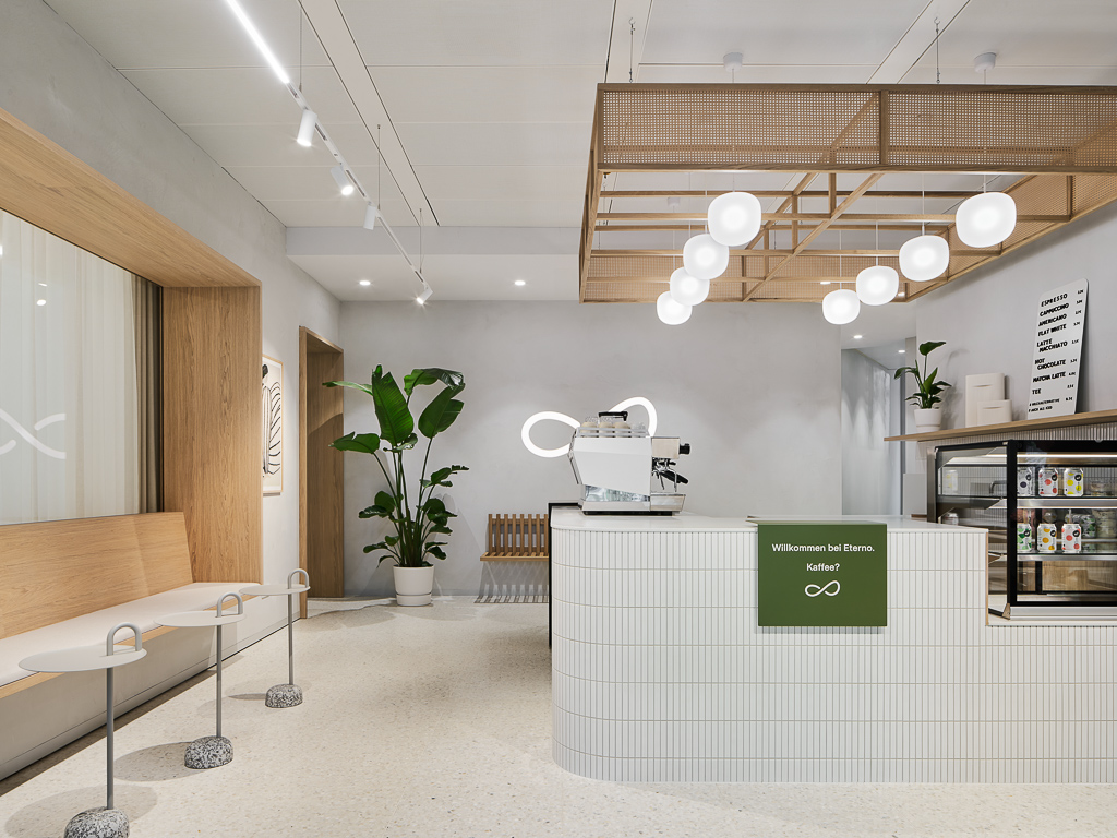 Der ETERNO Standort in Frankfurt am Main verfolgt ein ganzheitliches Gesundheitskonzept, das sich auch in der Gestaltung der Innenräume widerspiegelt. Moderne, ergonomisch geplante Praxisräume schaffen eine ruhige und angenehme Atmosphäre für Patient:innen und Ärzt:innen gleichermaßen. Neben verschiedenen Facharztpraxen umfasst der Standort zusätzliche Bereiche wie eine Sobar, Yoga- und Fitnessflächen sowie einen Retail Space. So entsteht ein Ort, der medizinische Versorgung, Prävention und Wohlbefinden miteinander verbindet und deutlich über die klassische Arztpraxis hinausgeht. In meiner Interiorfotografie habe ich den Anspruch eingefangen, Funktionalität und Aufenthaltsqualität in Einklang zu bringen und die besondere Raumwirkung dieses Konzepts sichtbar zu machen.