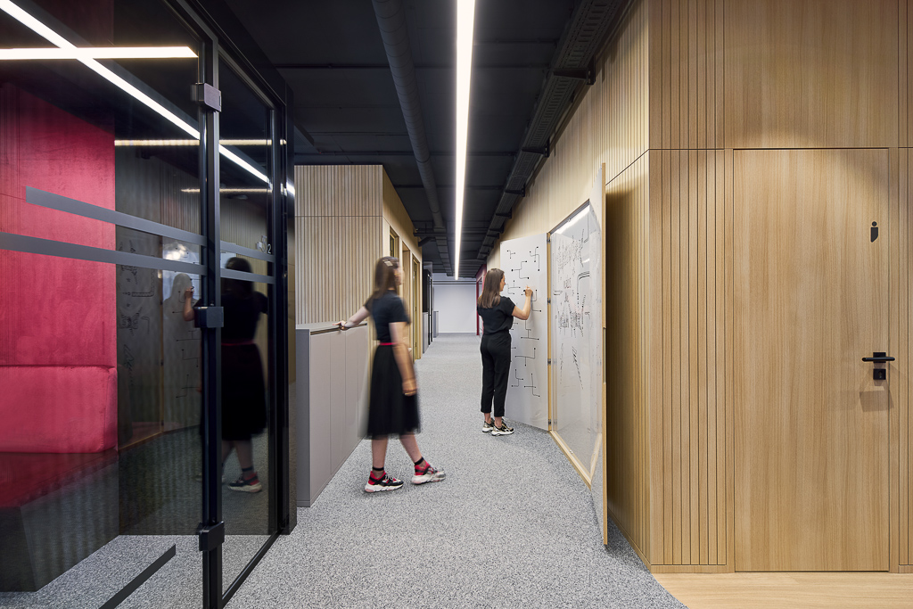 Im kernsanierten Bestandsbau der NEW AG entstand eine moderne Arbeitsumgebung, die Kreativität, Kommunikation und Effizienz verbindet. Entworfen und umgesetzt vom Büro BKP aus Düsseldorf, bieten offene Arbeitsplätze, interaktive Flächen und zentrale Storyboards Raum für informellen Austausch und neue Ideen. Große Glasfronten schaffen Transparenz, Holzkuben visualisieren das Geschäftsgebiet, und unterschiedliche Farb- und Materialkonzepte zeigen die Funktion der einzelnen Bereiche auf einen Blick. Multifunktionales Mobiliar und flexible Zonen wie die Smart Energy Labs oder Keep Moving-Bereiche fördern Dynamik und Bewegungsfreiheit. Individuell gestaltete Pausenbereiche bieten Raum für Austausch und bewusstes Innehalten.Die Interior- und Bürofotografie dokumentiert die Gestaltung und Nutzung der Arbeitsräume.